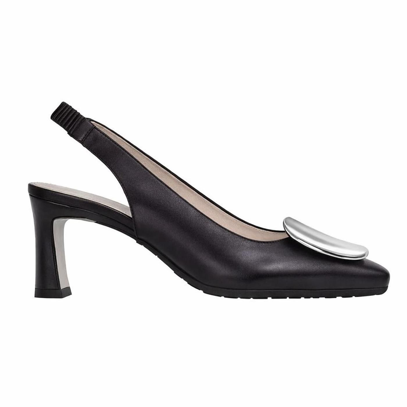 - Zapato tipo slingback (destalonado) con puntera cerrada y líneas suaves.