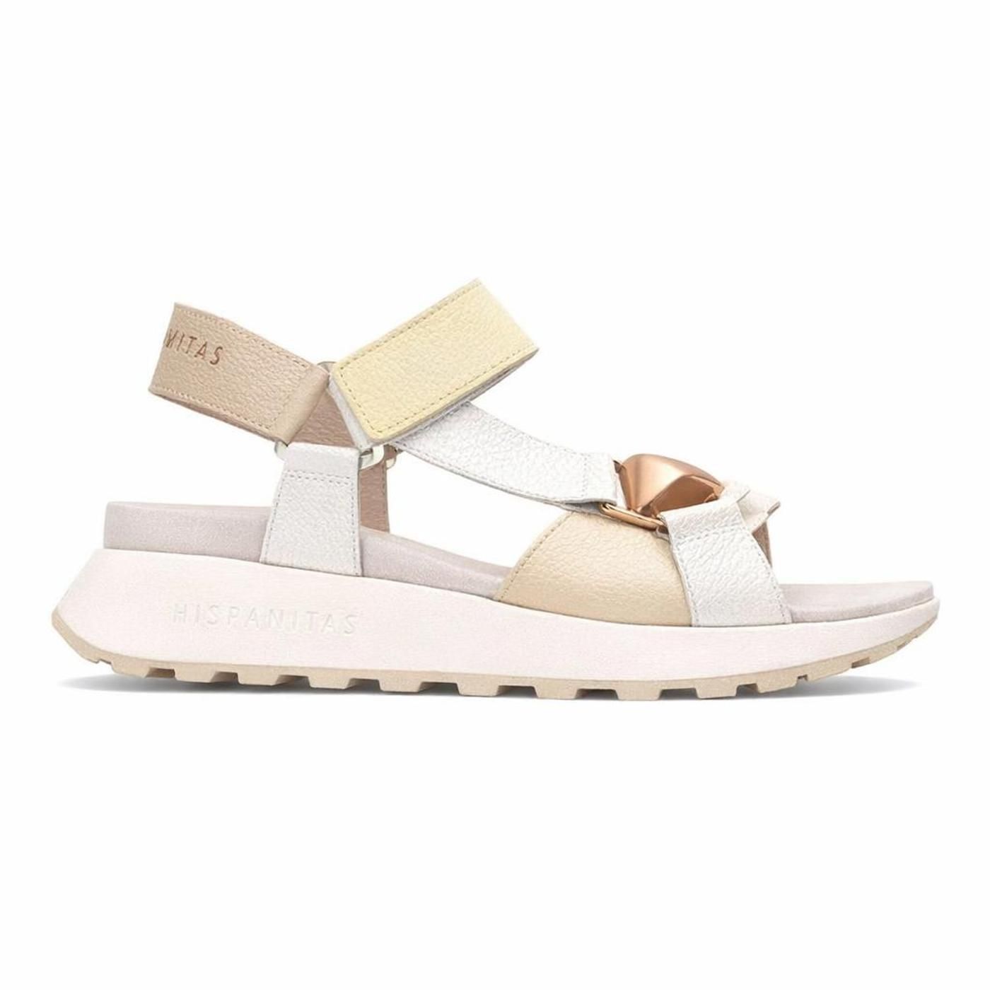 La sandalia HISPANITAS CHV264807 combina diseño contemporáneo y máxima comodidad en un modelo versátil ideal para el día a día. Su estética moderna se caracteriza por una armoniosa combinación de tonos neutros —blanco, beige y detalles metalizados— que aportan luminosidad y sofisticación a cualquier look.