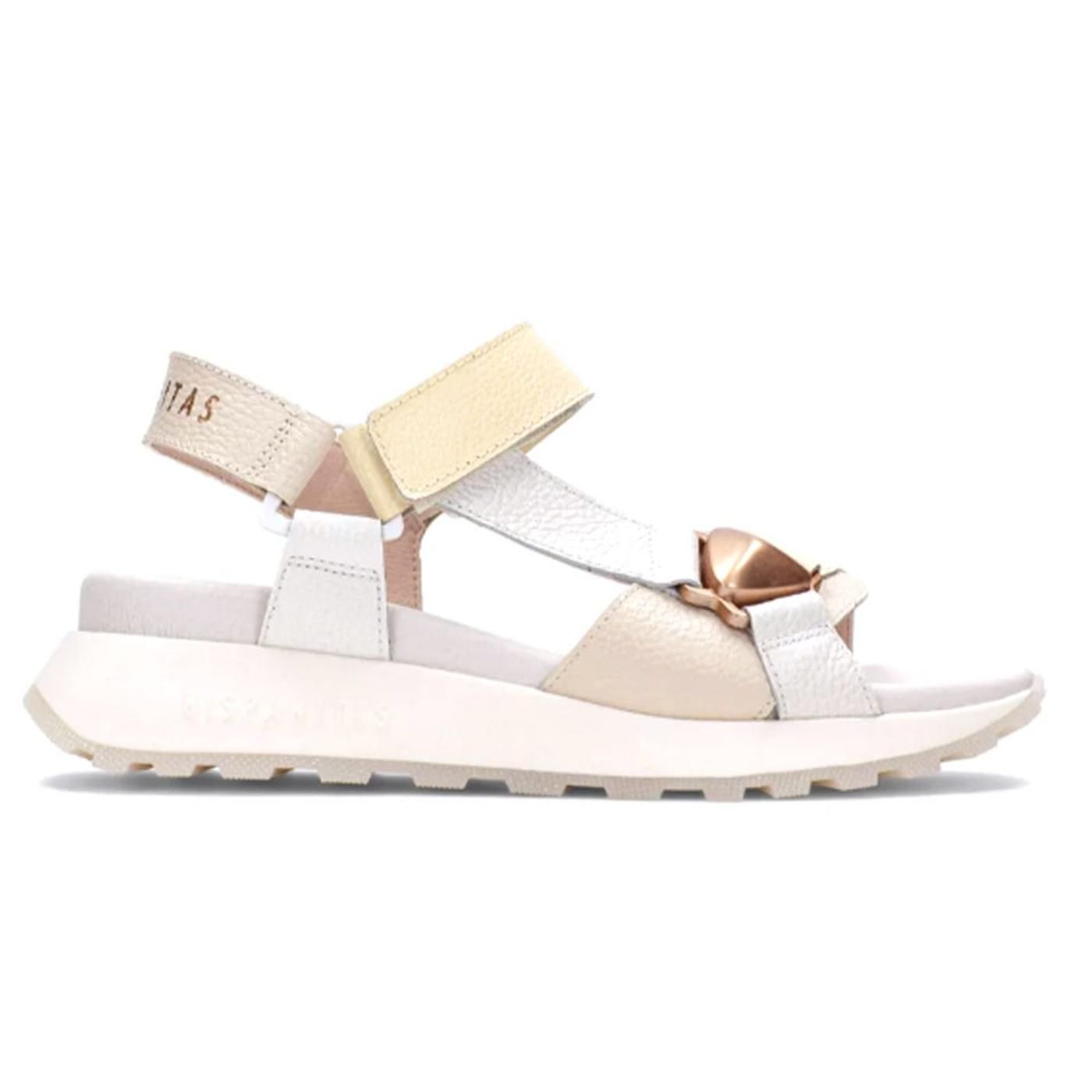 La sandalia HISPANITAS CHV264807 combina diseño contemporáneo y máxima comodidad en un modelo versátil ideal para el día a día. Su estética moderna se caracteriza por una armoniosa combinación de tonos neutros —blanco, beige y detalles metalizados— que aportan luminosidad y sofisticación a cualquier look.
