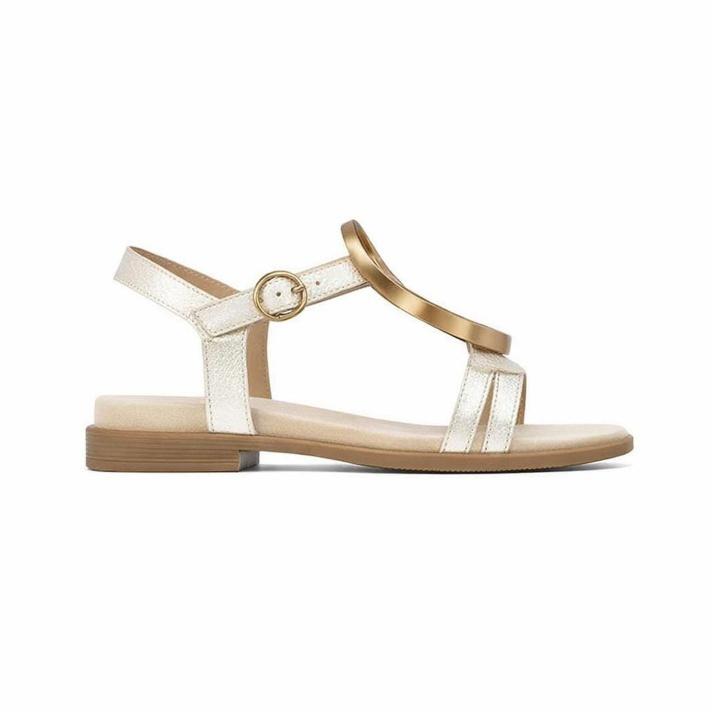 - Sandalia plana de silueta ligera y femenina.
