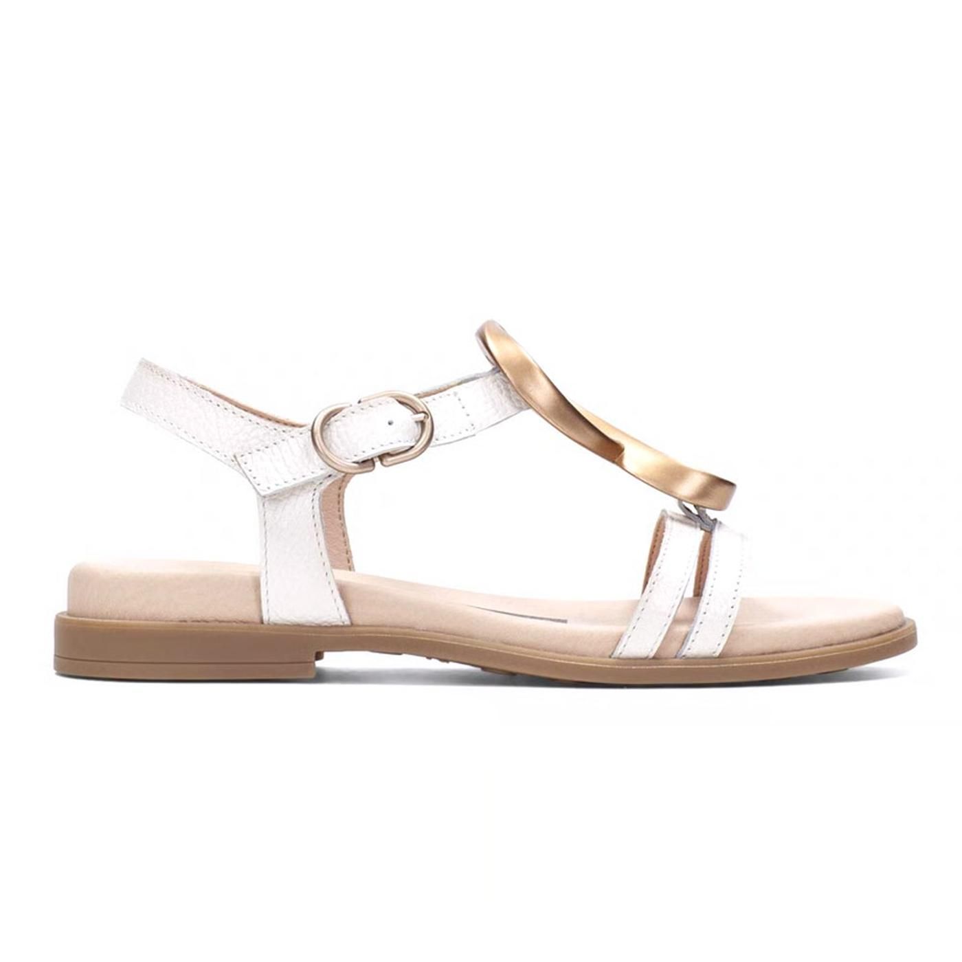 La sandalia HISPANITAS HV264765 destaca por su diseño elegante y contemporáneo, combinando líneas minimalistas con un sofisticado detalle metálico que aporta un toque distintivo. Su estética refinada la convierte en una opción versátil para completar looks tanto casuales como más arreglados durante la temporada primavera-verano.