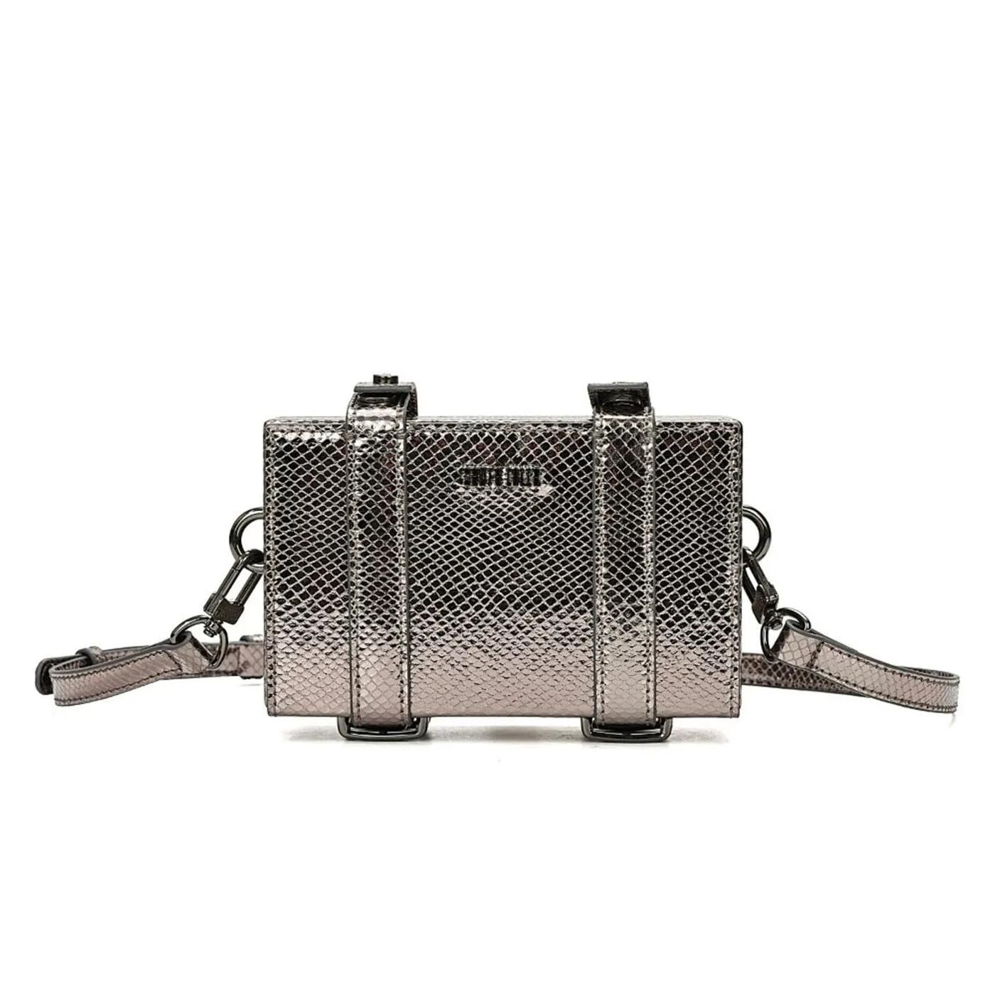 Bolsa Metalizada Preta Grafite Alça De Ombro