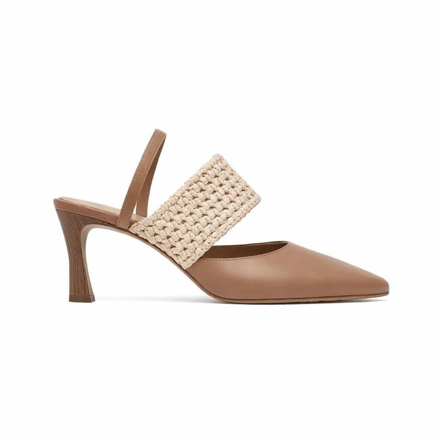 - Tipo: Zapato de tacón medio con talón abierto (slingback).