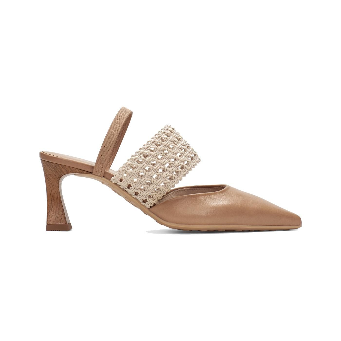 - Tipo: Zapato de tacón medio con talón abierto (slingback).
