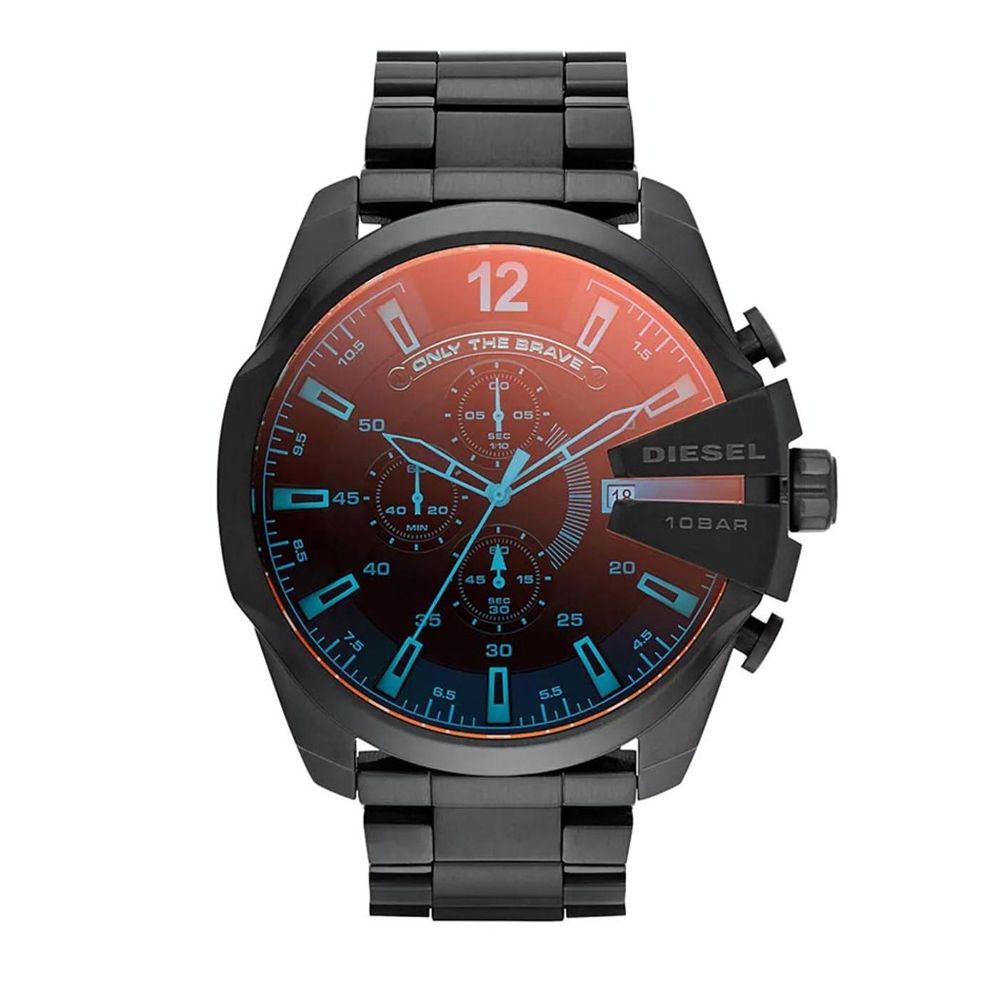 Este reloj marca Diesel tiene una caja de acero inoxidable con revestimiento en oro gris metalizado diámetro de 51 mm y cuenta con un brazalete de acero inoxidable al tono.