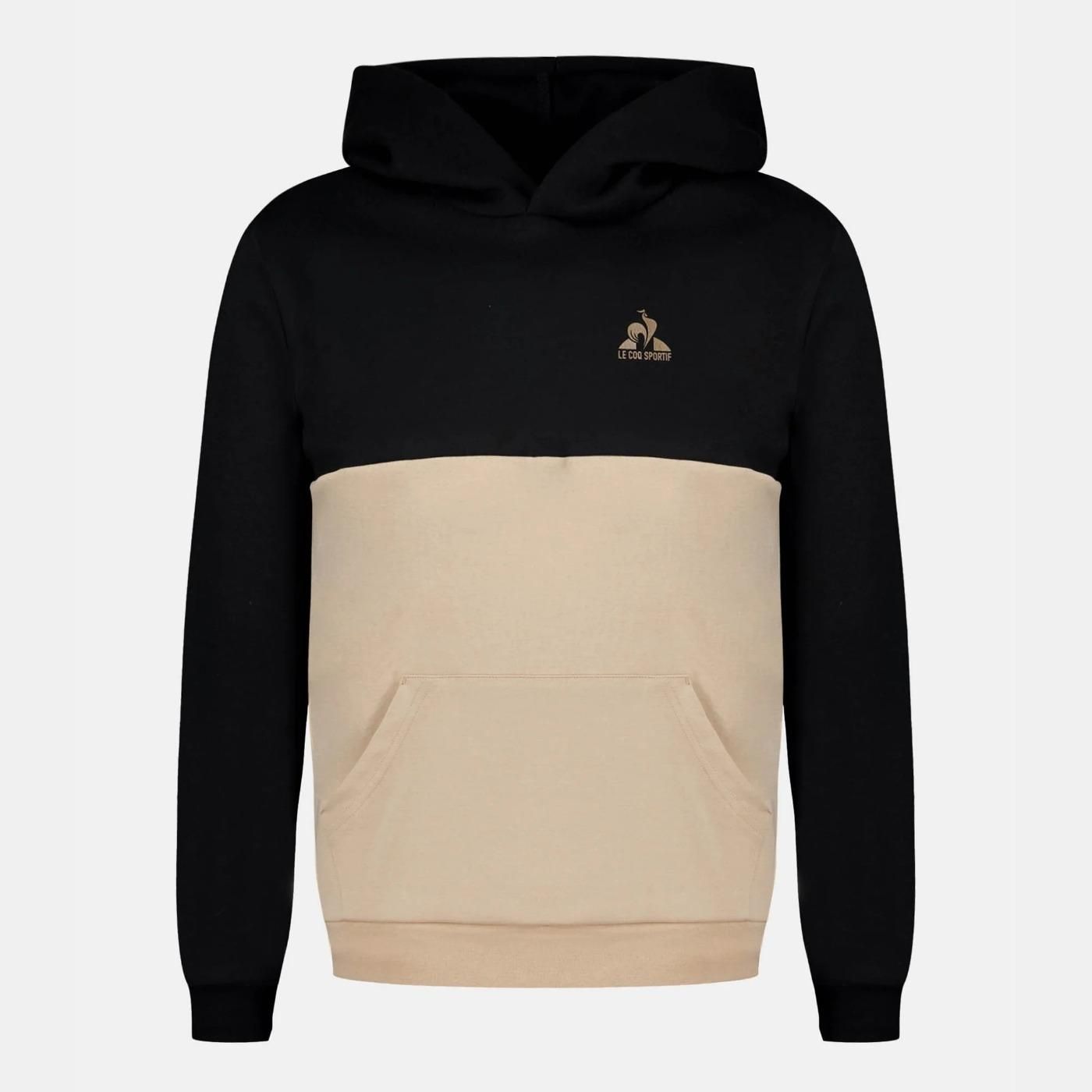 Su combinación de colores negro y beige aporta un efecto colorblock moderno, mientras que la capucha estructurada refuerza su estética actual y urbana. El logotipo “Logo du Coq” está serigrafiado en el lado izquierdo del pecho, aportando el sello distintivo de la marca.
